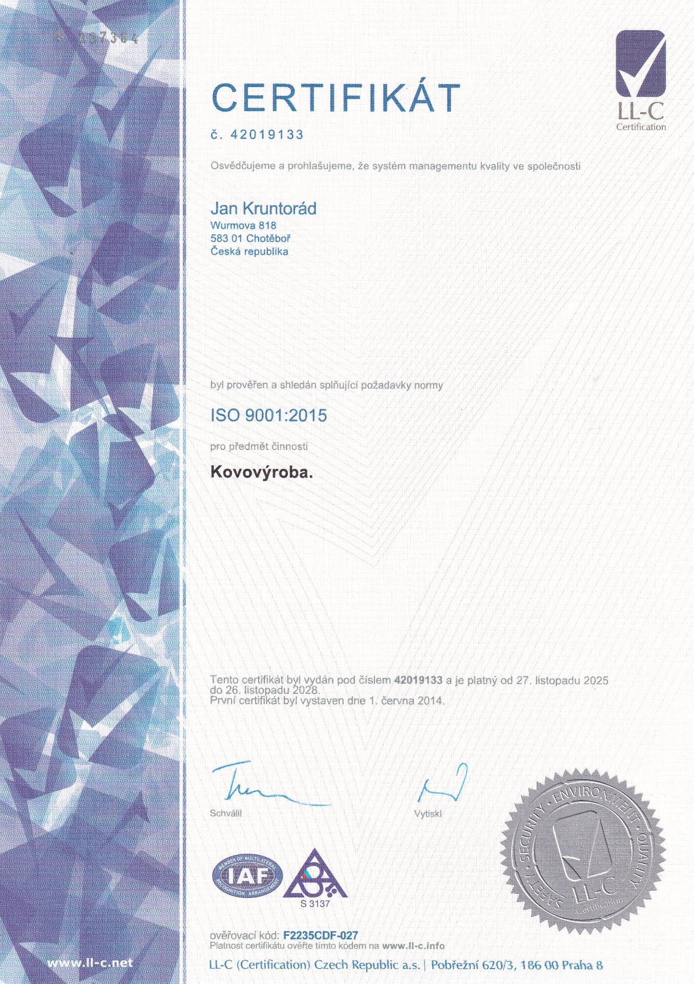 Certifikát kvality ISO